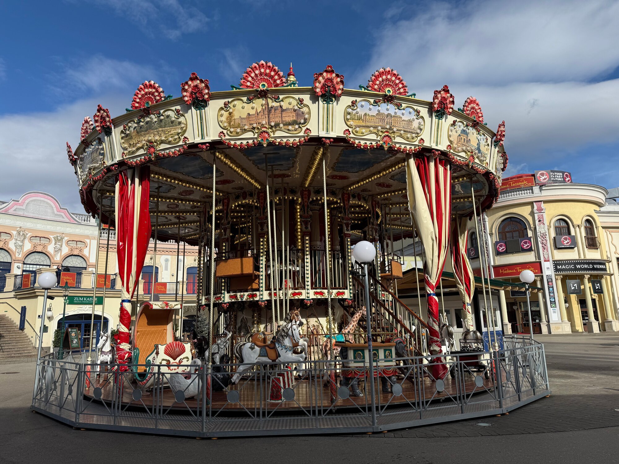 Information:Fleißig dreht das älteste Ringelspiel im Wurstelprater seine Runden. 11 pro Minute um genau zu sein.