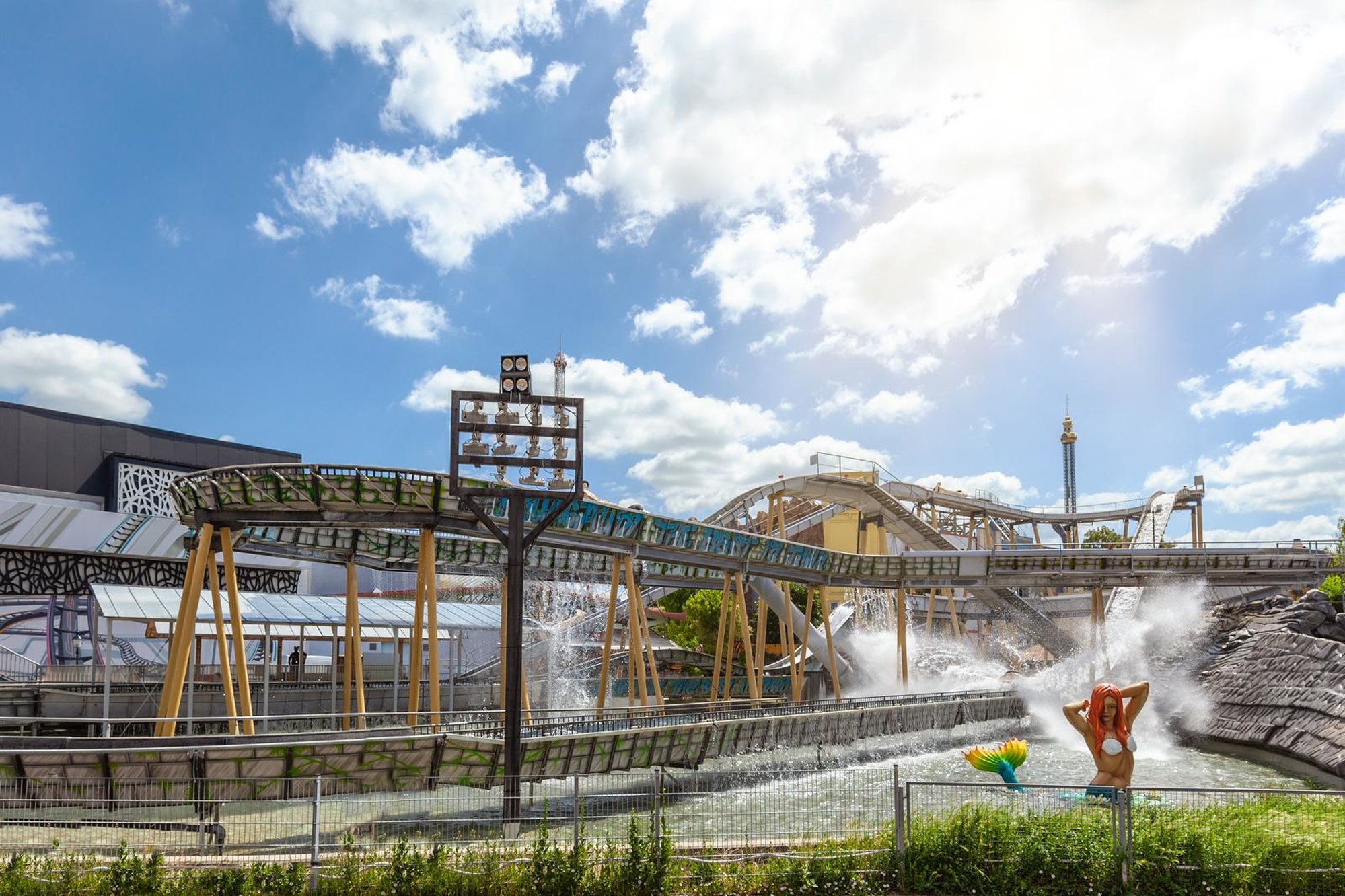 In ausgehöhlten Bambusstämmen wird eine alte Maya-Stadt durchfahren. Action und Wasserspaß mit drei Schusstrecken, Hochfahrt über dem Liliputbahn-Felsentunnel und dem berüchtigten "Kamelbuckel"!