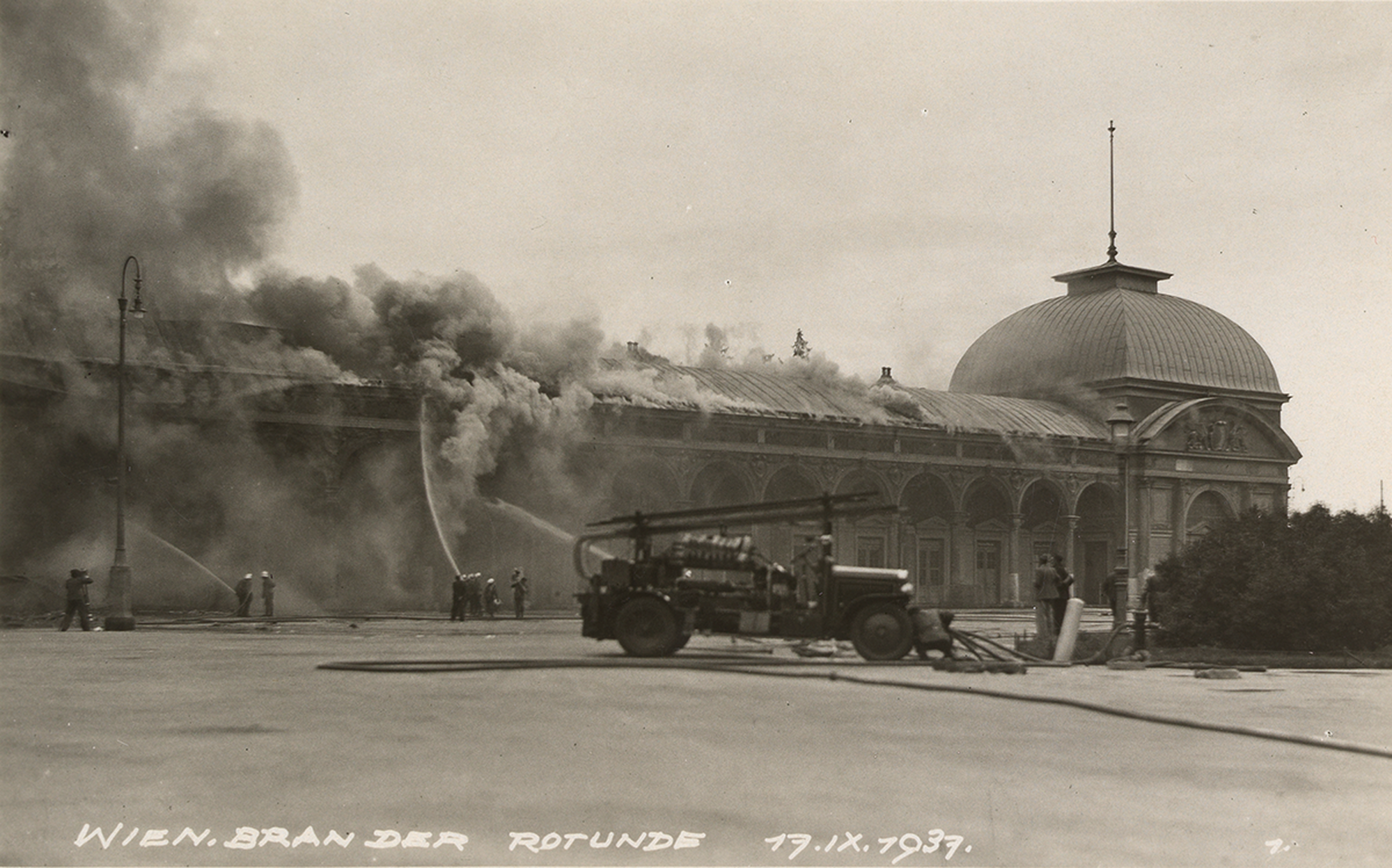 Die Rotunde wird durch einen Brand zerstört. Auf einem Teil des Geländes der ehemaligen Rotunde befindet sich heute die VIECON/Messe Wien sowie der Campus der Wirtschaftsuniversität.